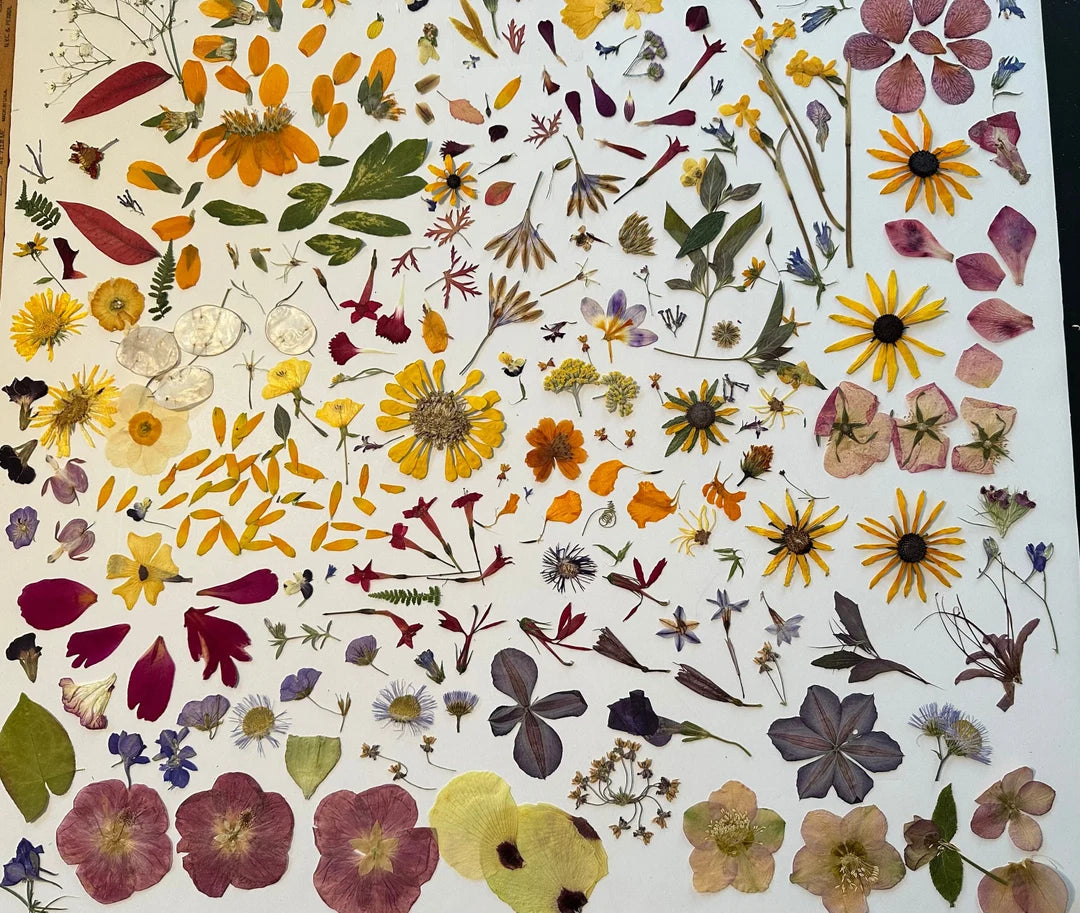 Our process starts right at home, in our own backyard. We lovingly grow, harvest, press, store, and create using local plants and florals from around central Virginia.