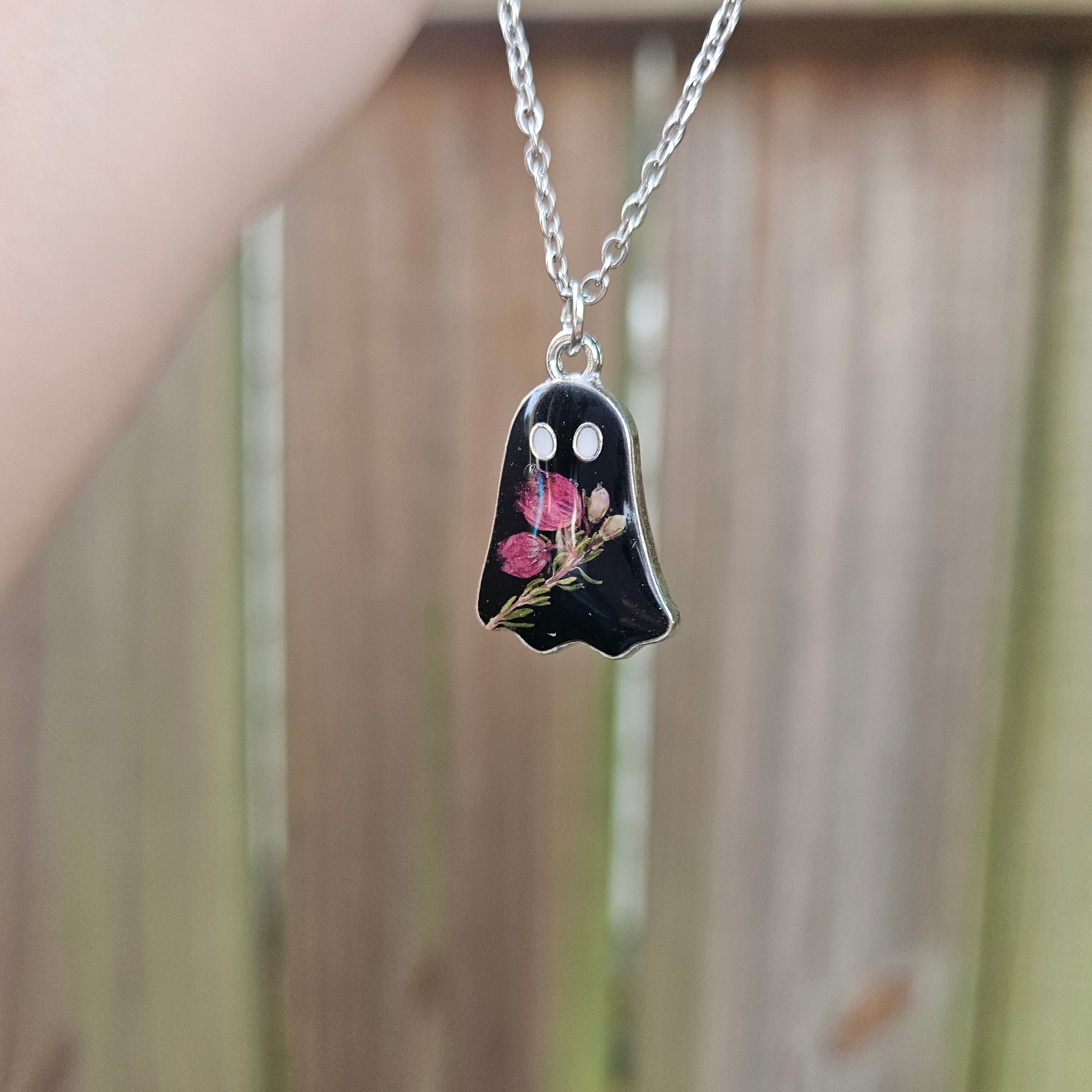 Get ready to spook your friends with this black ghost necklace, featuring real pressed boronia flowers! 👻