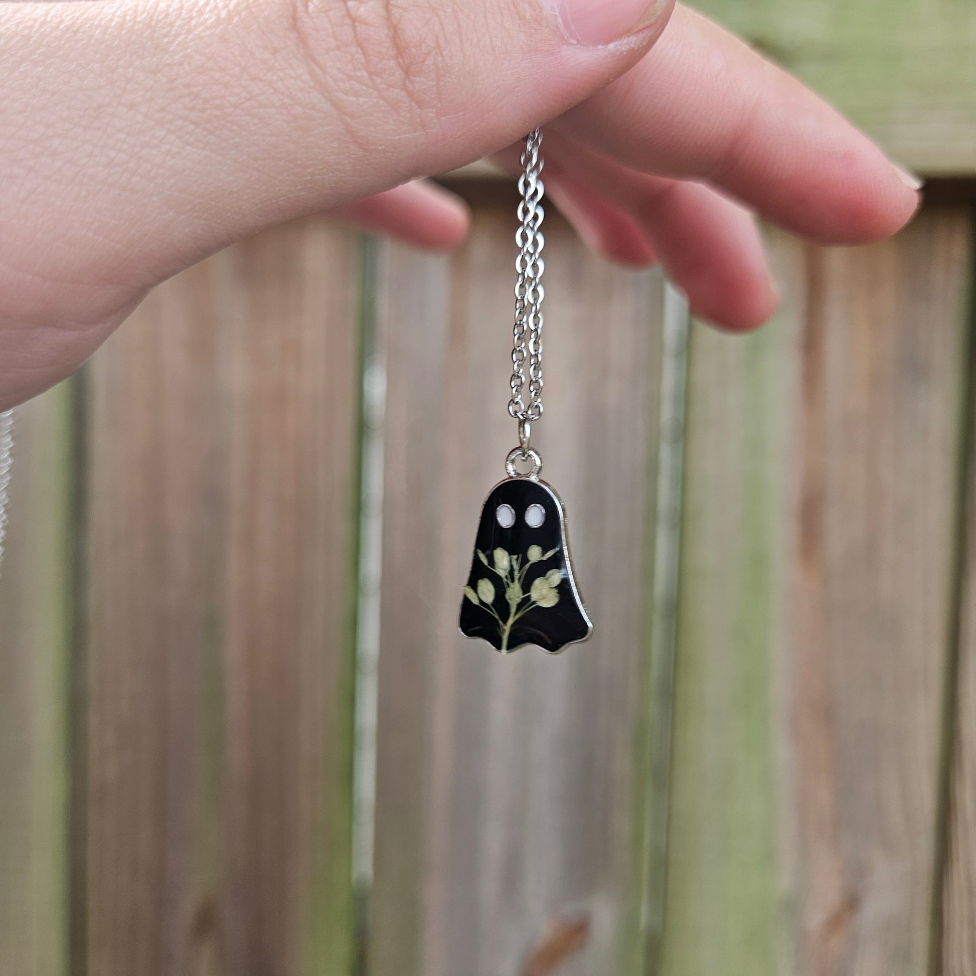 Elegant yet spooky black ghost necklace with preserved VA Pepperweed. 👻