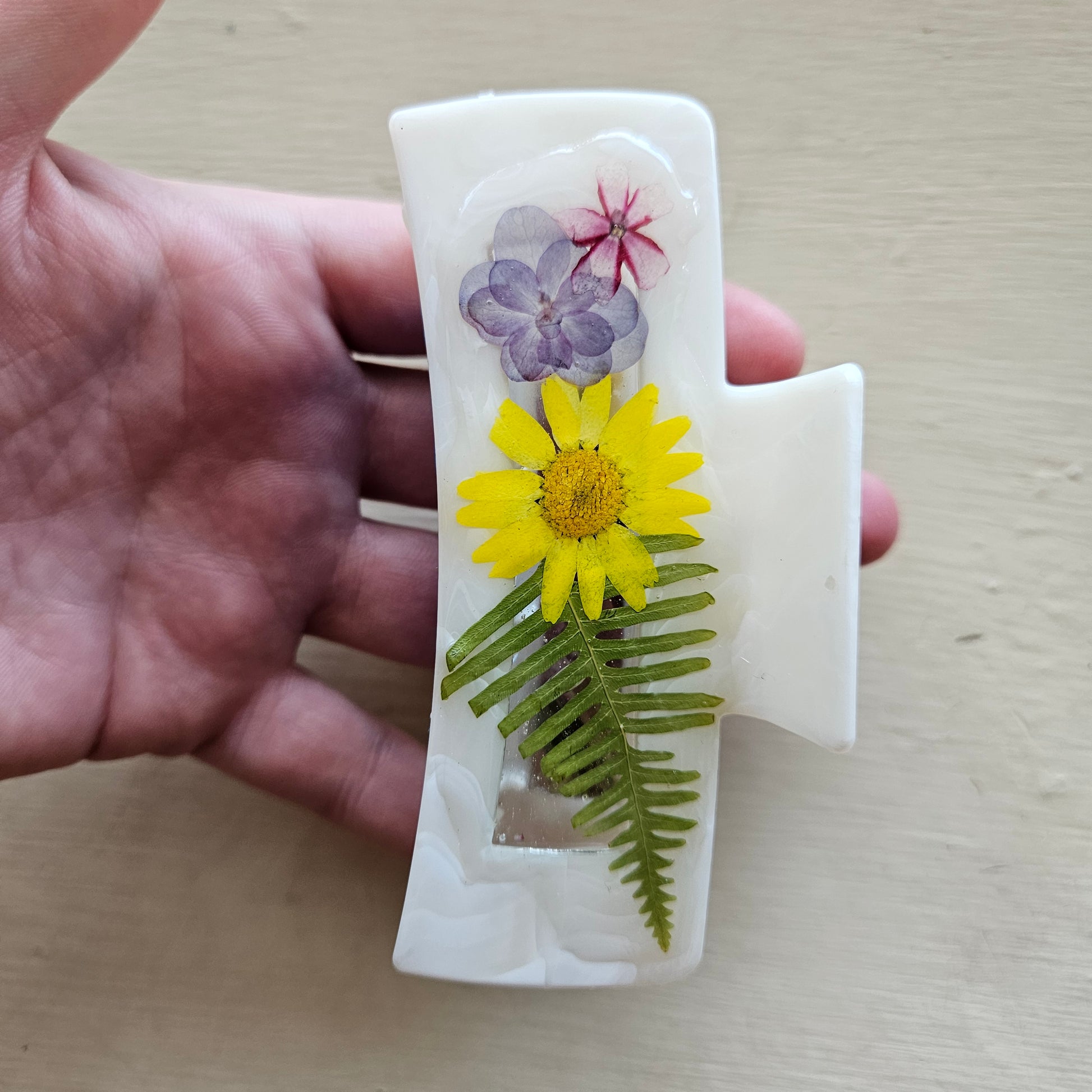 Large hairclip with pressed flowers