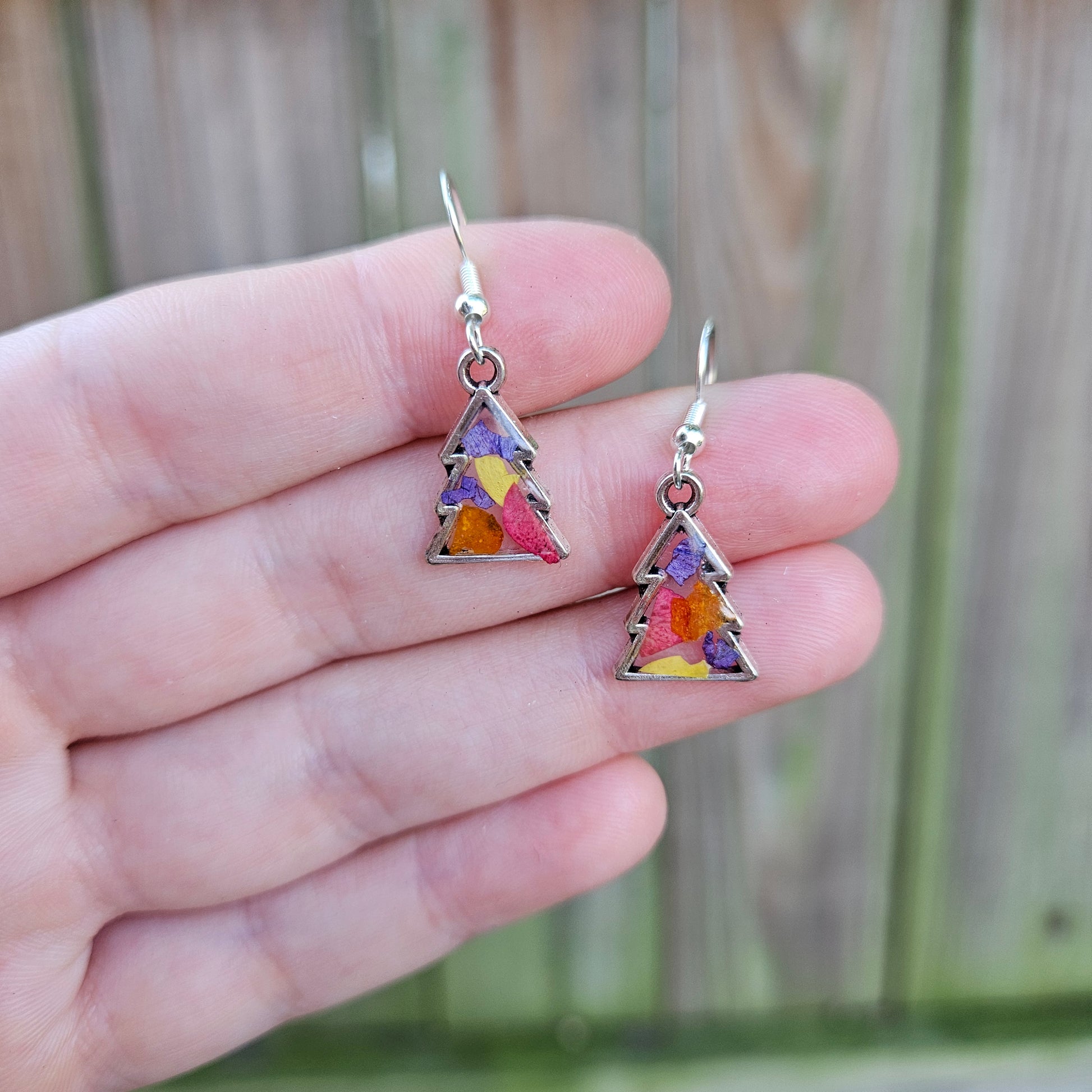 If you love fall foliage, these tree earrings will bey perfect for you! Made with colorful petal confetti.